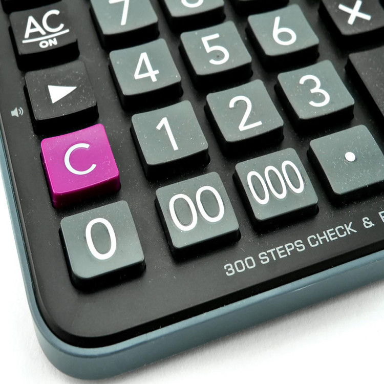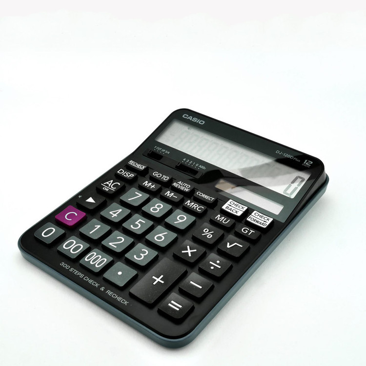 به جرات میتوانیم بگوییم با همان نگاه اول به ماشینحساب DJ-120D Plus متوجه طراحی حرفهای آن و همچنین کیفیت بالای ساخت خواهید شد. این ماشینحساب رومیزی که برای مصارف تجاری و فروشگاهی طراحی شده است دارای صفحهنمایش بسیار بزرگی است که اعداد را به درشتی نمایش میدهد و با توجه به قرار دادن آن بر روی میز کار خواندن اعداد از فاصلهی دور هم بهراحتی ممکن خواهد بود. دکمههای 2 صفر و 3 صفر در میان کلیدهای این مدل در وارد نمودن اعداد بزرگتر و طولانیتر را تسهیل میکنند. این ماشینحساب از دو منبع باتری و پنل خورشیدی برای تأمین برق مصرفی خود استفاده میکند که بدین معناست در شرایط نور کافی محیط نیازی به استفاده از باتری نیست و ازاینرو باتری دستگاه برای مدتی طولانی کار خواهد کرد. همچنین در صورت نیاز میتوانید محاسبات انجام شده را تا 300 مرحله چک کنید. برای نمایش اعداد میتوانید از 4 حالت استفاده کنید که توسط کلید تعبیه شده در بالای اعداد قابل تنظیم است.