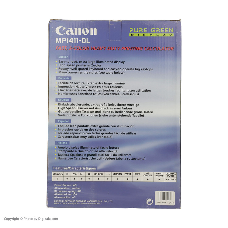 دارای کلید دو صفر و سه صفر دارای کلید درصد دارای کلید حافظه کلید نشانگر اعشاری F امکان گرد کردن اعداد کلید Mark Up / Mark Down کلید تغییر علامت کلید جمع کل (GT) کلید محسبه درصد دلتا