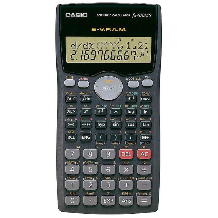 ماشینحساب «FX-570 MS» ساخت شرکت کاسیو یکی از مدلهای مهندسی این شرکت محسوب میشود. این مدل با دارا بودن قابلیتهای متعدد انتخابی مناسب برای جامعهی مهندسین و دانشآموزان رشتههای فنی است. صفحهنمایش این محصول با فناوری ماتریس نقطهای به همراه تکنولوژی S-V.P.A.M اشکال گرافیکی را به صورتی بسیار زیبا و واضح نمایش داده و همچنین معادلات و فرمولهای واردشده به همراه نتایج با استفاده از صفحهنمایش 2 خطی عیناً همانند کتب درسی نمایش داده میشوند تا درک آنها آسانتر شود. قابلیت STAT-data editor این امکان را به کاربر میدهد تا دادههای واردشدهی قبلی را مرور کرده و در صورت نیاز ویرایش نماید. کیفیت ساخت دستگاه همانند مدلهای قبلی کاسیو بسیار خوب است و دستگاه دوام و استحکام خوبی دارد. دکمههای دستگاه هم در 3 رنگ از پلاستیک باکیفیت ساختهشده و در برابر فشرده شدن پاسخگویی بسیار خوبی دارند.
