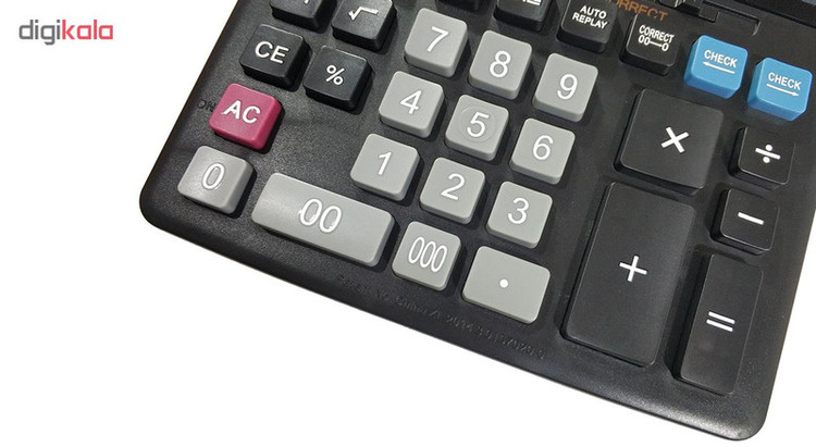 دارای کلیدهای حافظه MRC، M+، -M دارای کلید دو صفر دارای کلید GT دارای صفحه کلید بزرگ و روان ساخته شده از پلاستیک فشرده ، با دوام صفحه نمایش و اعداد بزرگ قابلیت انجام محاسبات درصدی و رادیکالی دارای دکمه نمایش خودکار مراحل محاسبه (AUTO REPLAY)