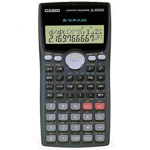 با ماشین حساب «fx-100MS» ساخت شرکت «CASIO» تکنولوژی را به سر کلاس درس ببرید. این ماشین حساب مهندسی با 300 تابع در خدمت شماست. دکمههای پلاستیکی بسیار راحت بوده و کار با این ماشین حساب را راحت میکنند. با این ماشین حساب میتوانید دادههای ورودی را مشاهده کرده و اصلاح نمایید. همچنین میتوانید فرمولهای اجرا شدهی قبلی را به راحتی مشاهده کرده و ویرایش نمایید. صفحه نمایش قابلیت نمایش 2+10 عدد را دارد و از تکنولوژی ماتریس نقطهای «DOT Matrix Display» برای نمایش استفاده میکند. از قابلیتهای این ماشین حساب میتوان به محاسبهی اعشار، جایگشت و ترکیب، آمار (لنحراف معیار، تجزیه و تحلیل رگرسیون) و 9 متغیر اشاره کرد. همچنین این ماشین حساب دارای درپوش کشویی برای محافظت در برابر ضربه و گرد و غبار است. از دیگر ویژگیهای این ماشین حساب میتوان به محسابات معادلات، محاسبات انتگرال و دیفرانسیل، محاسبات عددی پیچیده و محسابات Base-n اشاره کرد.
