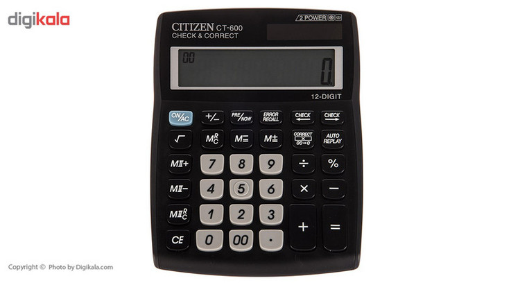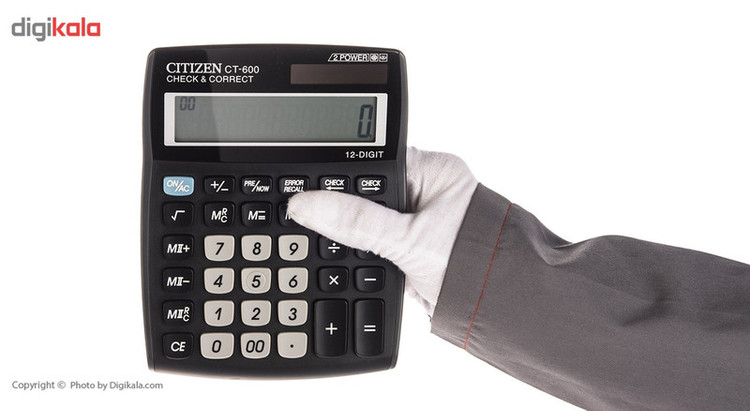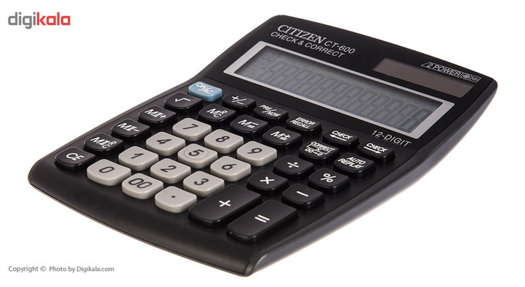 ماشینحساب «CT-600J» محصولی از شرکت «سیتیزن» (Citizen) است. این ماشینحساب صفحهنمایش یکخطی 12 رقمی دارد. برای تأمین برق مصرفی این دستگاه، دو منبع باتری و پنل خورشیدی در نظر گرفته شدهاند که درنتیجهی آن باتری تنها برای مواقع ضروری مانند تاریکی مورداستفاده قرار میگیرد و در باقی موارد در صورت روشنایی کافی محیط، دستگاه نور محیط را جذب و به نیروی موردنیاز خود تبدیل میکند. با بهرهمندی از ویژگی خاموش خودکار، دستگاه در مواقعی که مورداستفاده قرار نمیگیرد، خاموش میشود. کلید دو صفر، بررسی و اصلاح، سه کلید حافظه و درصد بر روی این دستگاه تعبیهشده اند. CT-600J دو حافظه دارد و ذخیره دو رقم را امکانپذیر کرده است. این دستگاه 209 گرم وزن دارد و ابعاد آن 188x146x34 میلیمتر است که فضای چندانی را بر روی میز کار اشغال نمیکند. کلیدها در عین طراحی نرم، بادوام و با کیفیت هستند.