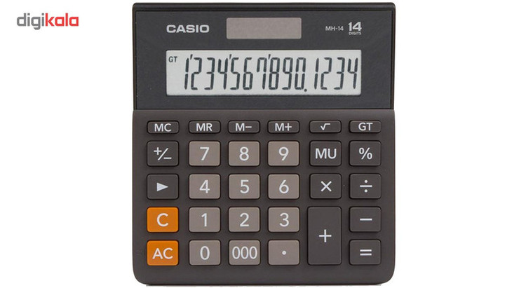 ماشینحساب «MH-14» ساخت شرکت «کاسیو» یکی از مدلهای دیگر رومیزی این شرکت است که برای استفادههای محاسباتی روزمره مناسب است. این ماشینحساب رومیزی را که از امکانات محاسباتی پایهای برخوردار است، میتوان در فروشگاهها استفاده قرار کرد. صفحهنمایشی که روی این ماشینحساب قرار دادهشده قادر است تا چهارده عدد درشت را نمایش دهد که باتوجه به رومیزیبودن محصول درشت بدون اعداد ضروری و الزامی است. مانند قریب به اکثریت مدلهای کاسیو این ماشینحساب هم از دو منبع باتری سکهای و پنل خورشیدی برای تامین برق مصرفی خود استفاده میکند؛ بهاین معنا که در شرایطی که نور محیط کافی است دستگاه نور را جذب کرده و به برق تبدیل میکند و شاید هیچگاه مجبور نباشید تا باتری دستگاه را تعویض کنید. دکمههای بهکاررفته در این دستگاه از نوع پلاستیکی سخت بوده که مقاومت بسیار بالایی در استفادههای طولانیمدت داشته و بسیار بادوام هستند. از امکانات محاسباتی این محصول میتوان به محاسبهی درصد اشاره کرد.
