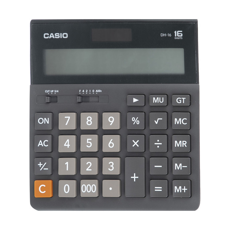ماشین حساب کاسیو مدل DH-16-BK از جمله ماشین حساب های رومیزی است که به صورت wide طراحی و تولید شده است. دکمه های این ماشین حساب از جنس پلاستیک است. برای کاربری راحت تر، اندازه کلیدهای ماشین حساب بزرگ طراحی شده است. صفحه نمایش این ماشین حساب، به صورتsingle line است و دستورات و عبارات محاسباتی در یک خط و وارد میشوند. در واقع عبارات محاسباتی نمیتوانند به همان شکل که در کتابها نوشته میشوند، در ماشین حساب نمایش داده شوند. این ماشین حساب دارای کلیدهای حافظه است که بسیار کاربردی هستند؛ برای مثال از کلید M+ برای اضافه کردن مقادیر به حافظه ماشین حساب استفاده کنید. سپس می توانید از کلیدهای REC یا MR برای فراخوانی آن مقدار از حافظه برای استفاده در یک معادله استفاده کنید. به طور کلی با استفاده از این ماشین حساب میتوان محاسبات اولیه مختلف را انجام داد.