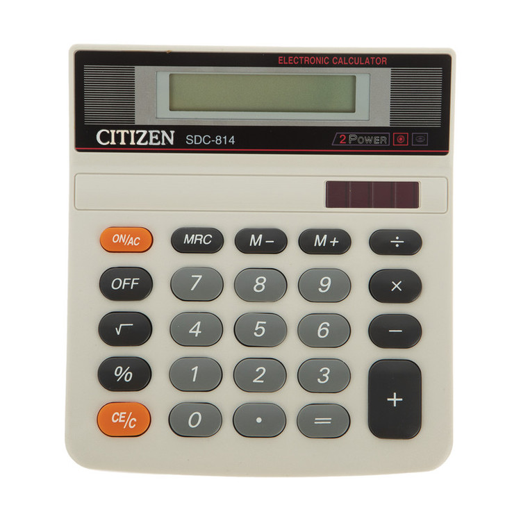 ماشین حساب رومیزی دارای کلید حافظه دارای پنل خورشیدی به عنوان منبع انرژی دوم در نور کم