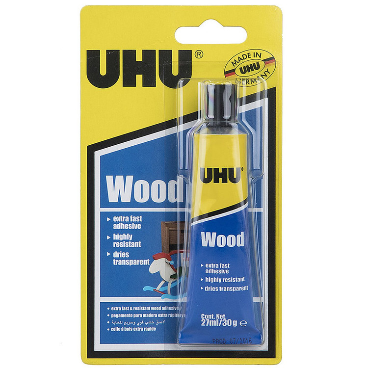 چسب چوب مادهای است که برای استحکام بیشتر در اتصالات چوبی به کار میرود. این مادهی شیریرنگ، از غلظت بالایی برخوردار بوده و عملکرد آن مانند مصالح سیمانی بین آجر است. شرکت «اوهو» (UHU) اینگونه چسب را هم در مدلها و اشکال مختلف تولید میکند. حتی اگر میزان مصرف شما از این نوع چسب کم باشد، بازهم شرکت اوهو پاسخگوی این نیاز هست. یک مدل از محصولات این شرکت چسب چوب تیوبی است. این محصول در یک تیوب که حاوی 30 گرم چسب است تولید میشود. شکل این محصول، استفاده از آن را راحتتر میکند. امروزه در صنعت چوب، نجاری و برای ساخت دکور از چوبهای روکشدار استفاده میشود؛ ازاینرو سازههای چوبی را کمتر رنگ میکنند. بنابراین در استفاده از چسب چوب، باید دقت زیادی شود تا حجم زیادی از چسب از محل اتصال بیرون نزند. بیشتر چسب چوبهای تولیدشده توسط شرکت اوهو دارای دهانهای است که بهآسانی قابلاستفاده باشد. در نظر داشته باشید که برای استفاده صحیح از این مدل، باید 10 دقیقه محل اتصال را به صورت ثابت نگه دارید. اوهو نام برند و شرکت آلمانی بسیار مشهوری است که همواره از تولیدکنندگان برتر در ساخت گونههای مختلف چسب به شمار میآید.