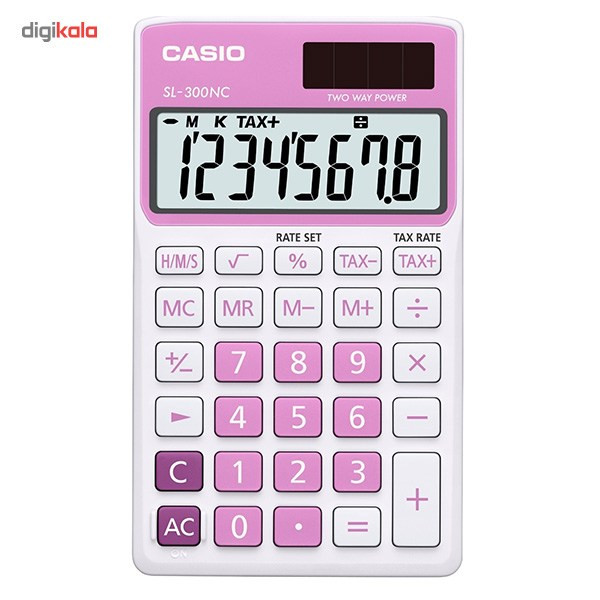 دستگاه SL-300NC ساخت شرکت کاسیو یکی دیگر از مدلهای فانتزی این شرکت محسوب میشود که در رنگهای متنوع و مختلفی ارائه میشود و قطعاً نگاه هر بینندهی را جلب خواهد کرد، بهگونهای که حتی اگر نیاز چندانی به ماشینحساب نداشته باشید شاید بخواهید برای تزئین محیط و میز کار خود یکی از این ماشینحسابها را بر روی میز خود داشته باشید. این مدل به سری سادهی ماشینحسابهای کاسیو تعلق دارد که قابلیتهای محاسباتی آن در سطح ابتدایی و پایه است. بااینحال کاسیو در این مدل کمی فراتر هم رفته است و قابلیت محاسبهی مالیات و زمان را بهصورت ساعت، دقیقه و ثانیه را هم در این مدل تعبیه کرده است. صفحهنمایش بهکاررفته در این مدل میتواند تا 8 عدد را نمایش دهد که برای محاسبهی ارقام نهچندان طولانی مناسب است و برای تأمین برق مورداستفاده در این ماشینحساب پنلی خورشیدی در نظر گرفتهشده است که میتواند در محیطهای روشن و پرنور انرژی خورشید را جذب کرده و به برق تبدیل نماید و میتوان گفت که مانند دیگر مدلهای کاسیو این ماشینحساب نیاز چندانی به باتری نخواهد داشت.