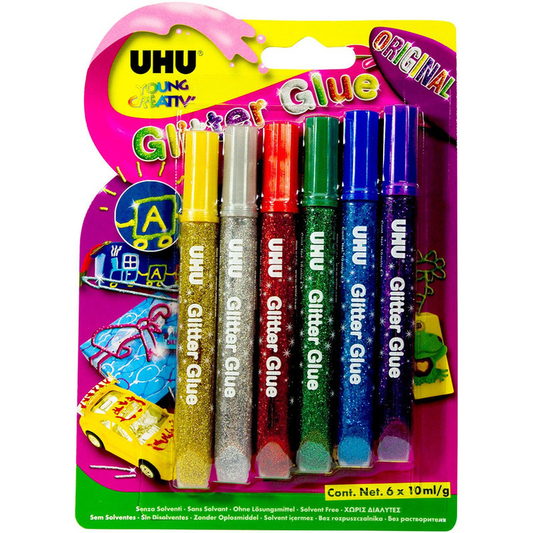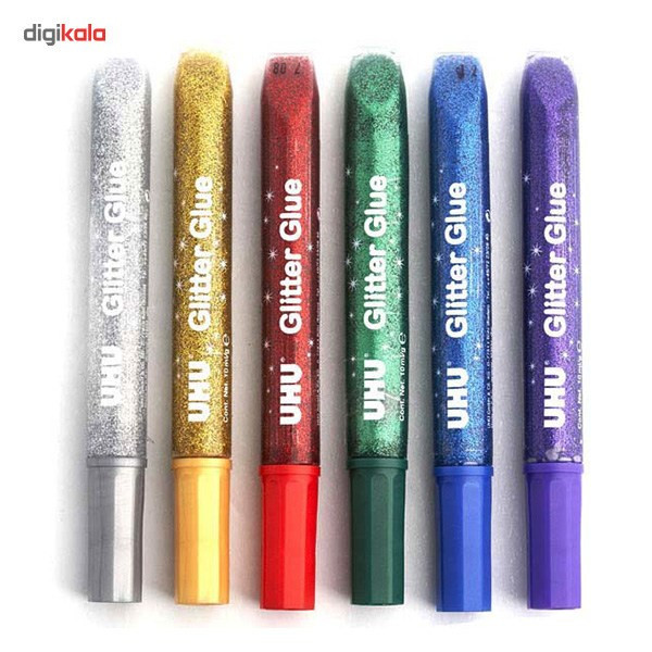 - محتوی شش تیوب چسب اکلیلی 10 میلیلیتری - قابل استفاده بر روی مواد مختلف - دارای تیوب بسیار نرم با دهانهی ظریف بهمنظور کاربرد آسان و تمیز - مناسب دستان کوچک کودک - بدون حلال و قابل شستشو - مناسب برای ساخت کارت تبریک، کاغذ کادو و قاب عکس